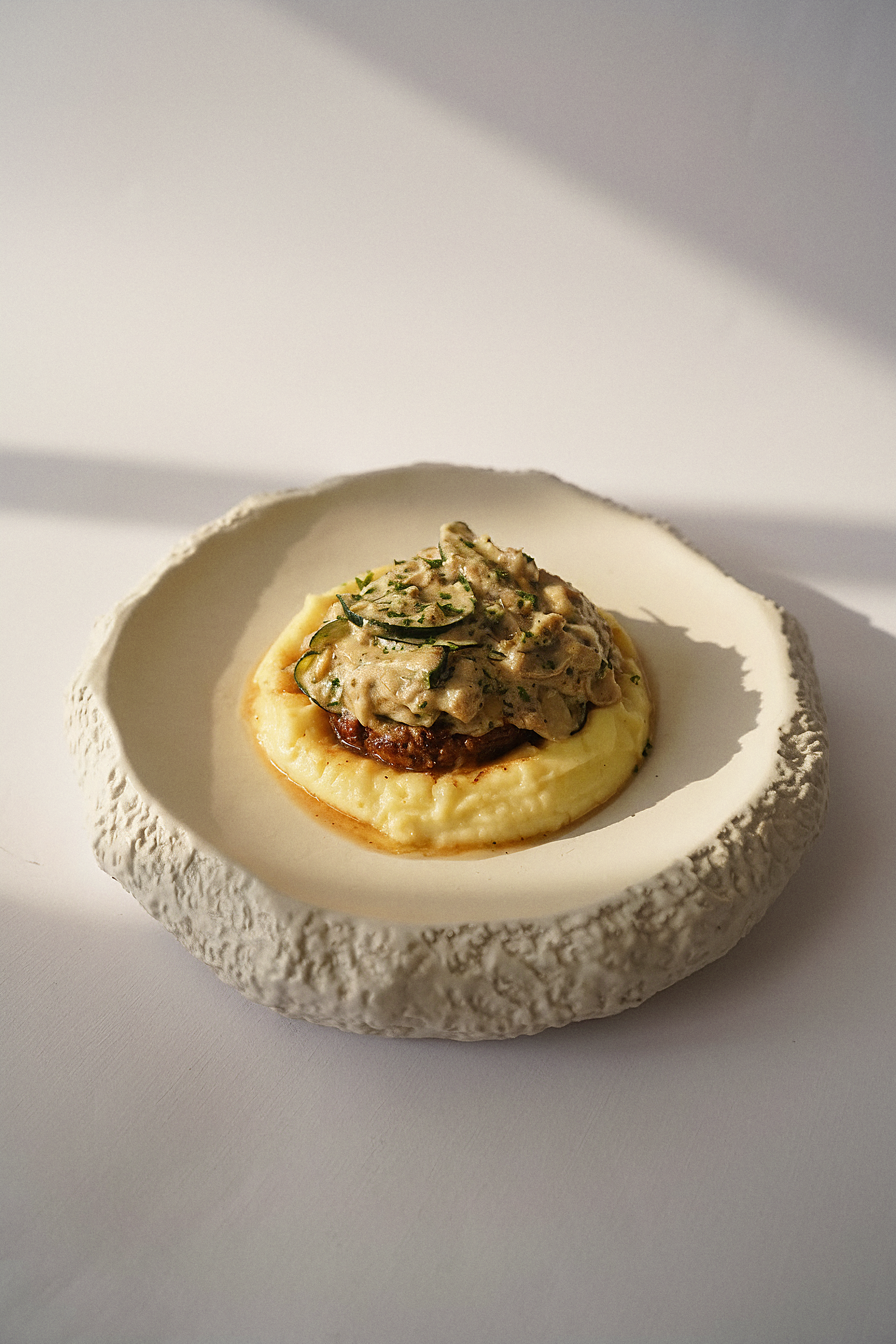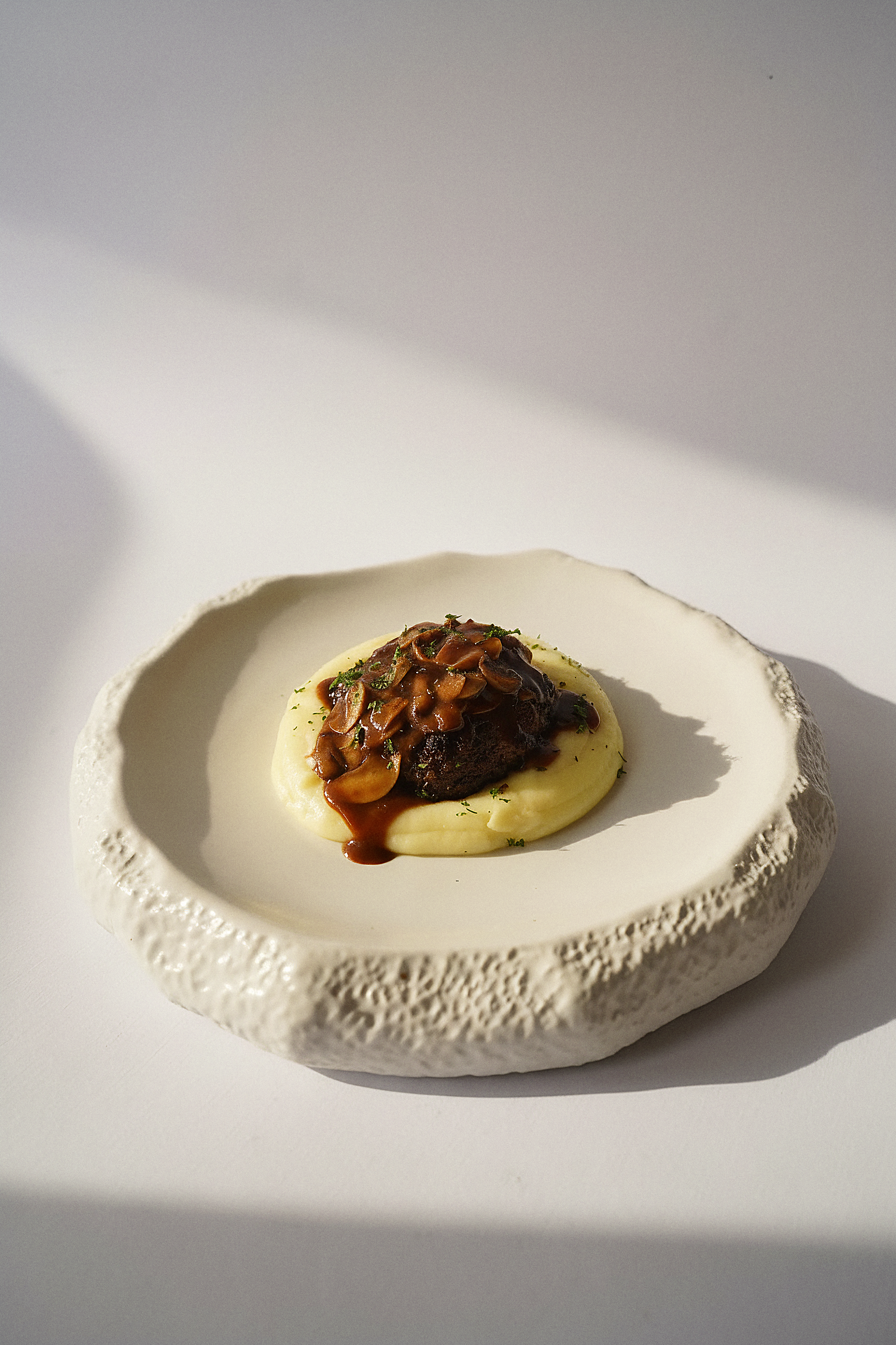 Beef patty with mashed potatoes & demi-glace