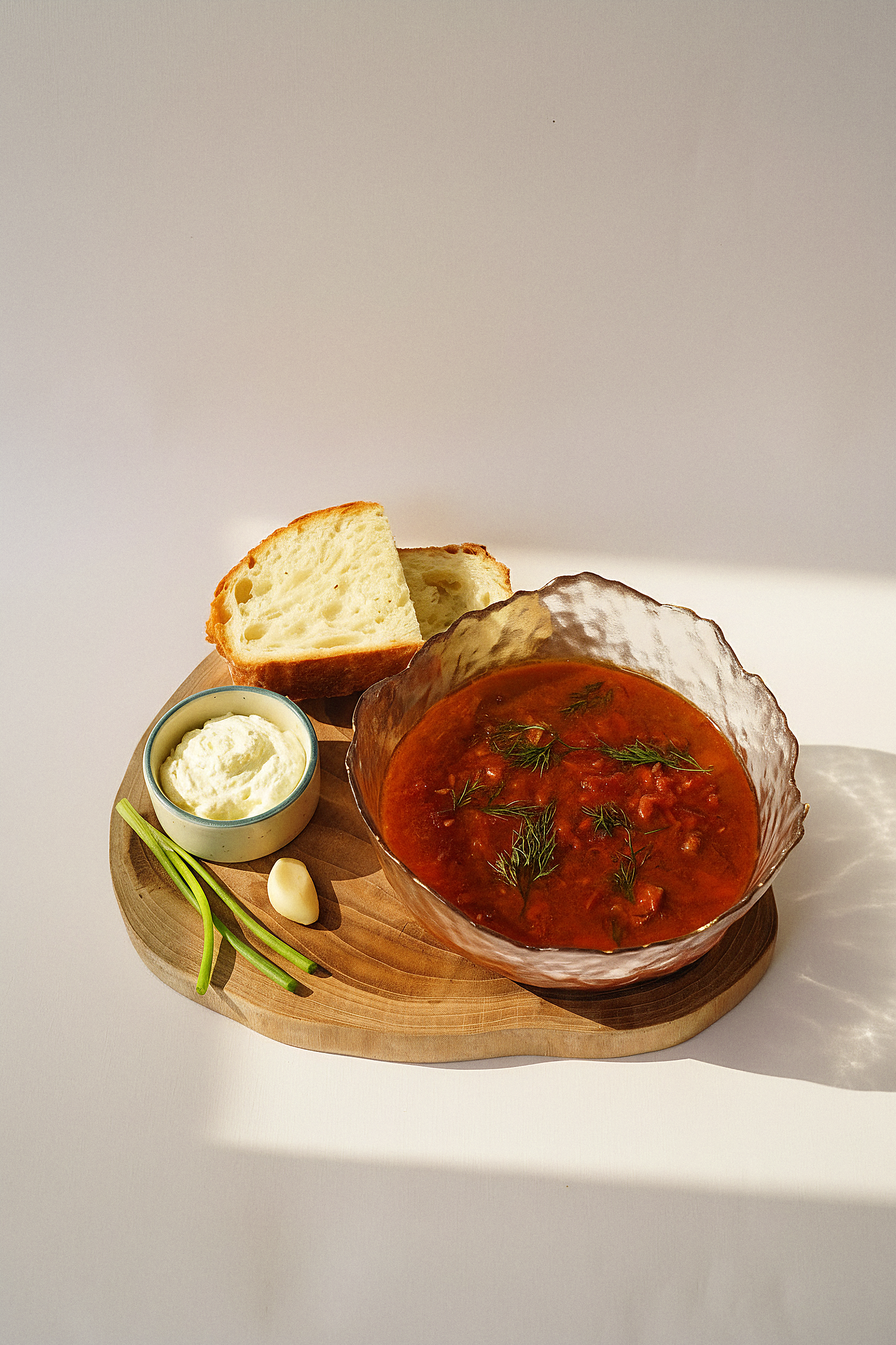 Rich beetroot soup with tender beef, vegetables and sour cream