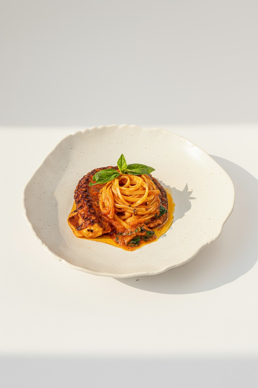 Octopus pasta with tomato sauce