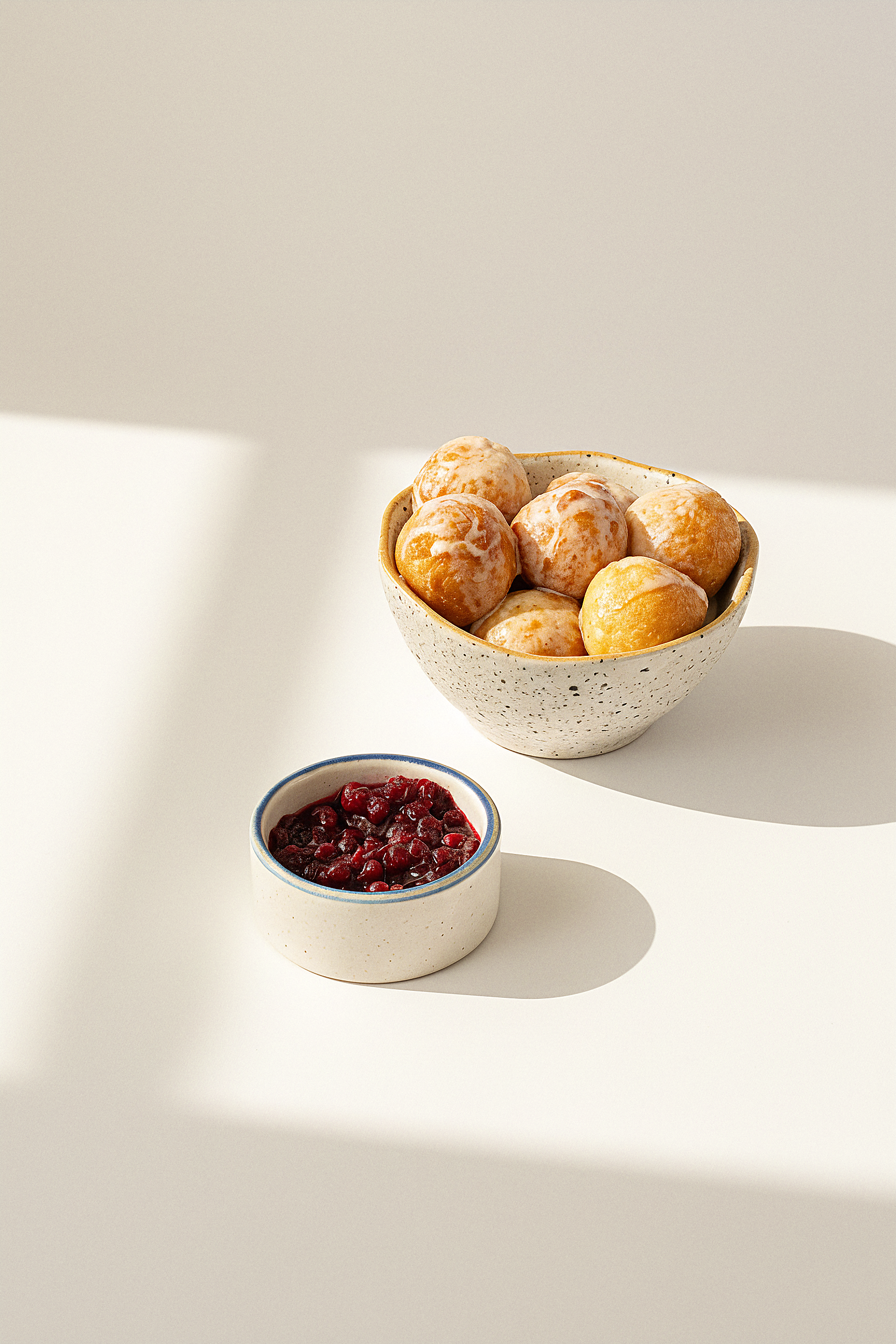 Sweet dough balls with vanilla & cranberry sauce