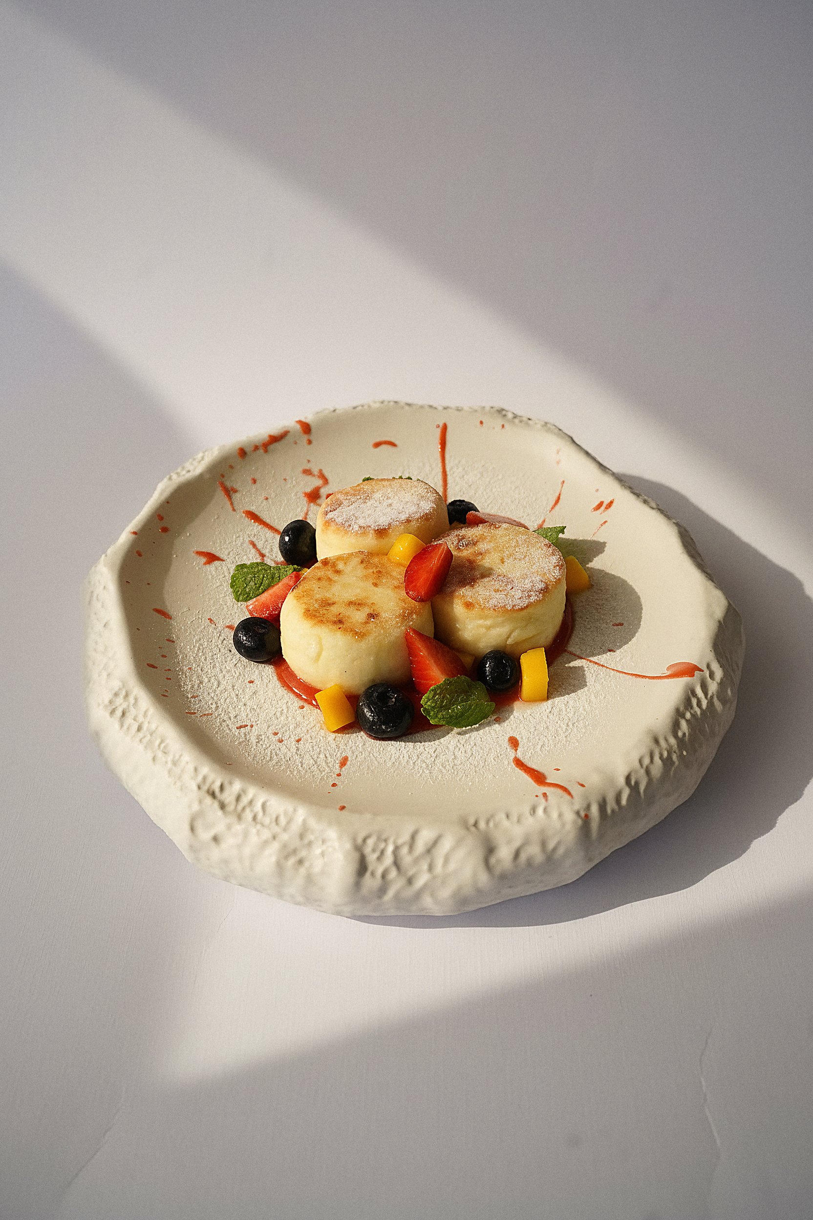 SyrnikiCottage cheese pancakes with fruits and frozen berries